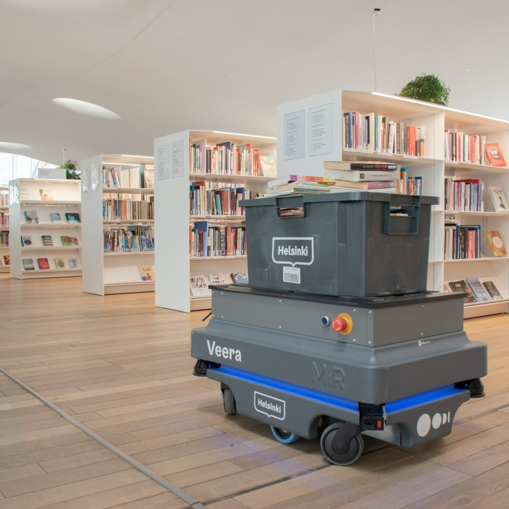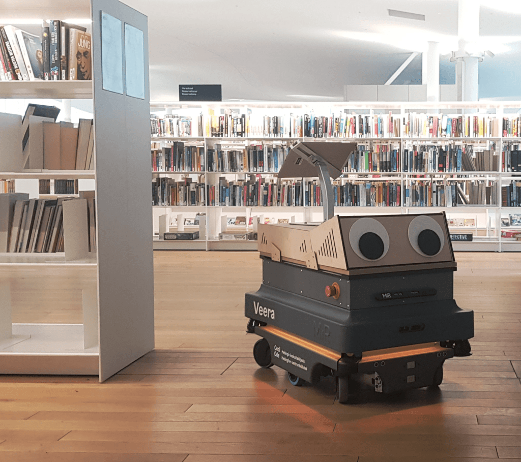 And just in case you’re interested in an actual book – they are moved around the library by this little robot, Veera: