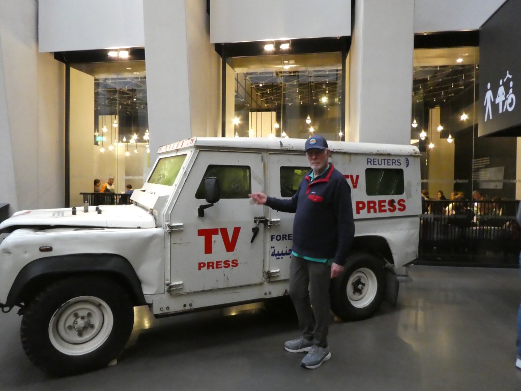 Here’s Ron, pointing out a damage to a Reuter’s press van. It was hit by rocket fire in Gaza in 2006. Both reporters inside were injured but survived: