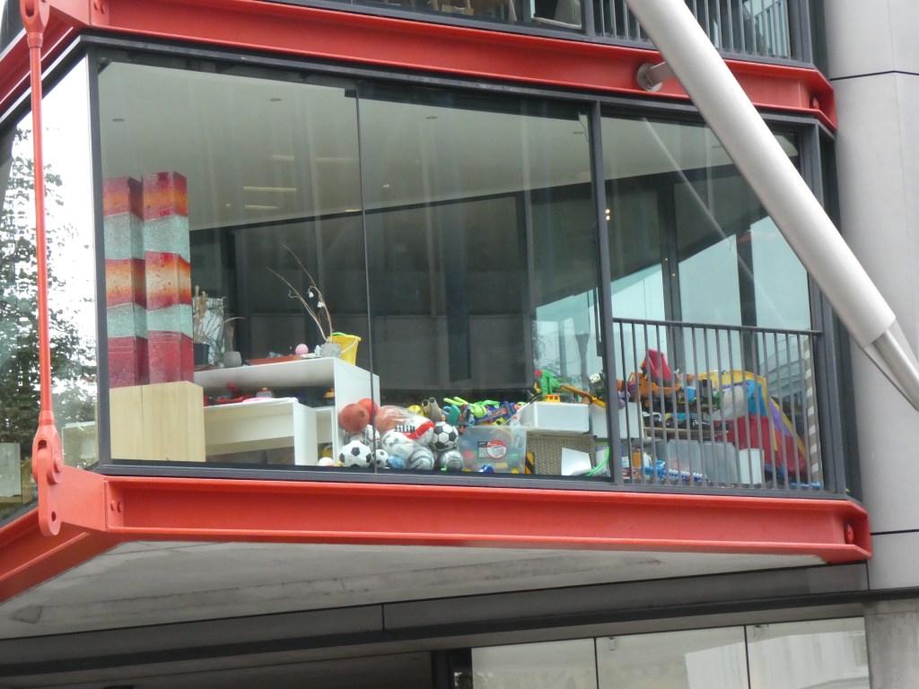And then look at this zoomed in shot of one of the units with all those toys? Dog toys? stored in the window: