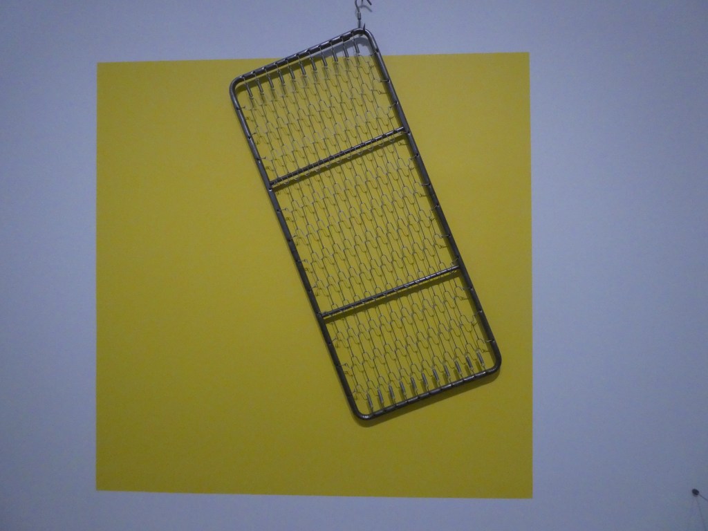 This is Untitled by Jannis Kounellis, from 1993. He’s working with bed springs, a meat hook, and paint on a wall:
