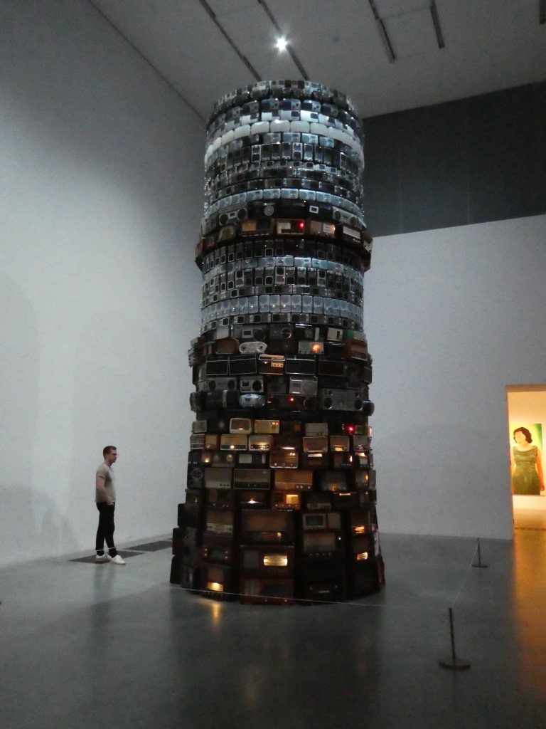 Here’s my favorite, called Babel 2001. It’s a tower of hundreds of radios, each tuned to a different station. It’s supposed to represent miscomprehension and mankind’s conflicts: