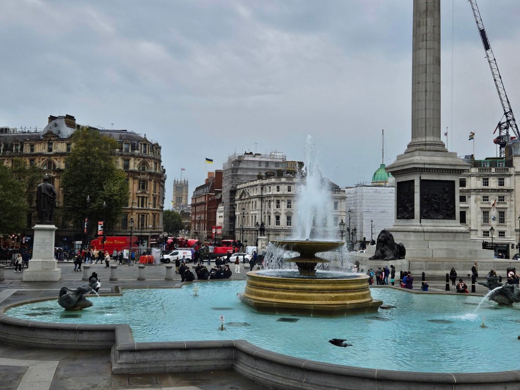 Here’s Trafalgar Square – dedicated in 1844 to celebrate the British defeat of Spain and France in the Napoleonic Wars. One pic below mine and one pic not mine. I’ll let you try to sort them out.