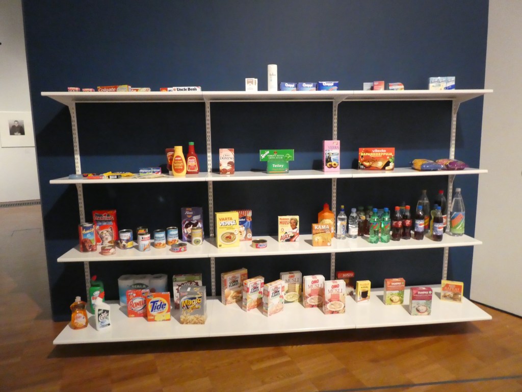 I am proud to say I lasted over 90 minutes in the British Museum, and just before we left, I saw the Rosetta Stone with my own eyes, but didn’t take any pictures because I wanted to go look for a snack. That reminds me of a artistic display I wanted to share with you from back in Tallinn, when Ron and I went to the Kumu art museum, which hopefully will help you feel better about my performance at the British Museum. I was struck by this installation of assorted snack food and cleaning items and found it to be the kind of art that speaks to me: