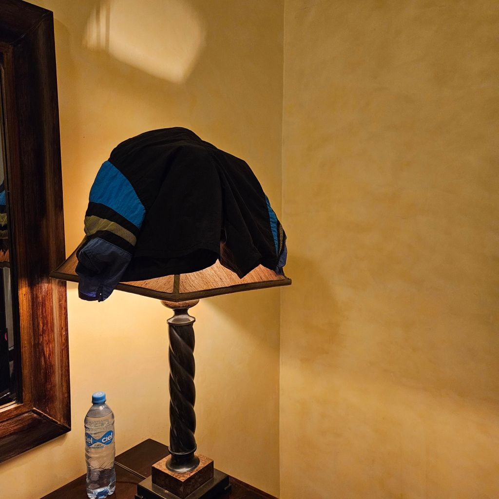 Come on, Ron! Didn’t the rooms come equipped with hairdryers? Granted though, the decorative drying technique has its charms. But I must admit that the next time I’m in a hotel room, and I reach for the lamp, I’m going to wonder if some dude’s undies were once hanging there, and I will opt for my phone flashlight.