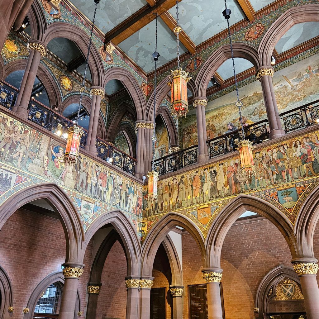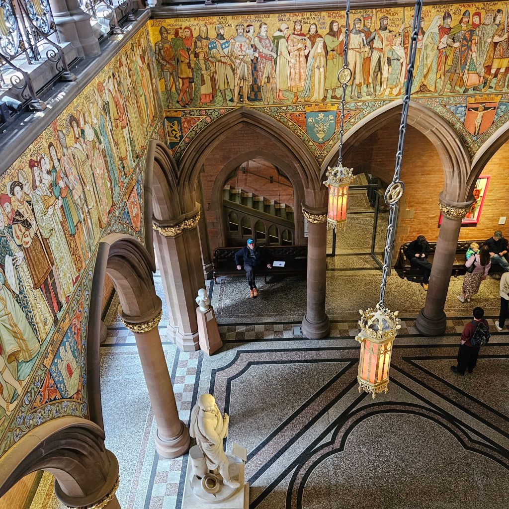 And then look at this Great Hall in the Portrait Gallery. The frieze you see contains 155 figures from Scottish history, in reverse chronological order – royalty, military, poets, inventors, and religious leaders. The frieze – painted by William Brassey Hole in 1897- was a requirement from the key financial donor for the building itself – paint the frieze or no building gets funded. At least they weren’t required to put a picture of the Dandie Dinmont and the dead rat here too: