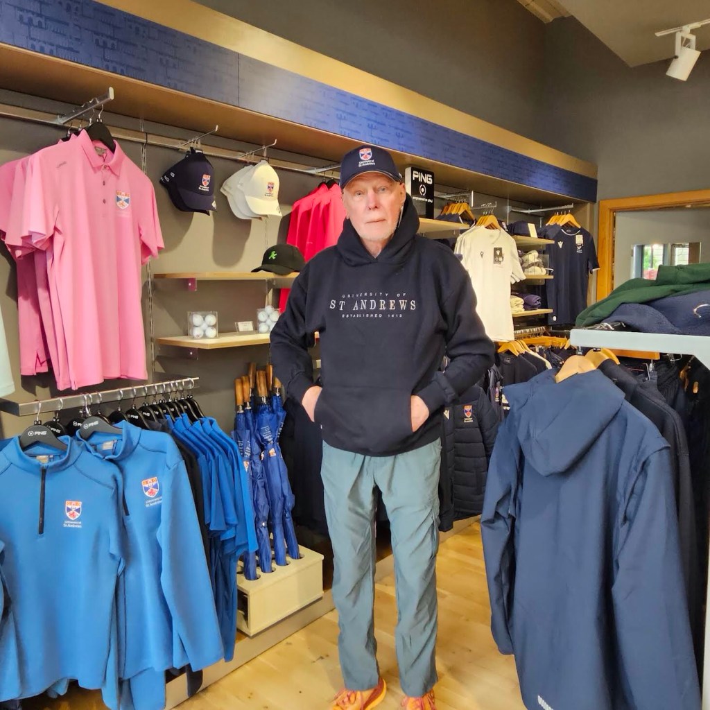 I’ll leave you with this other picture from St. Andrews. It’s Ron at the university book shop, making another purchase. One week in and he’s purchased 3 sweatshirts and 3 hats.