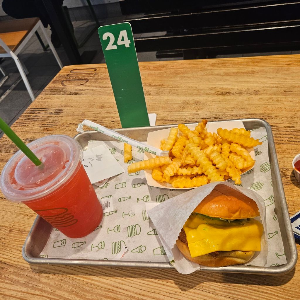 In between those two cathedrals, I came across a Shake Shack. Ron and I only discovered the Shack last year. This tray of food cost me $25 but I could afford it because I am not parking a car in downtown Chicago.