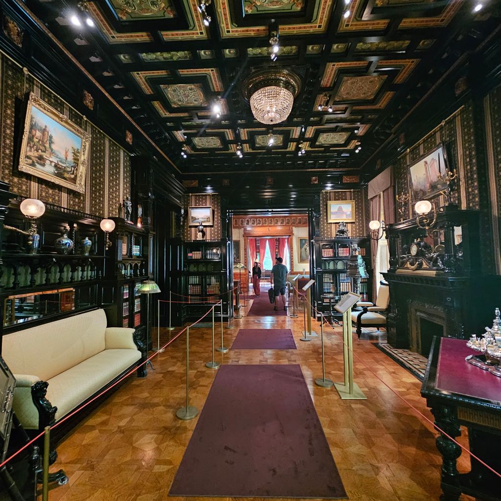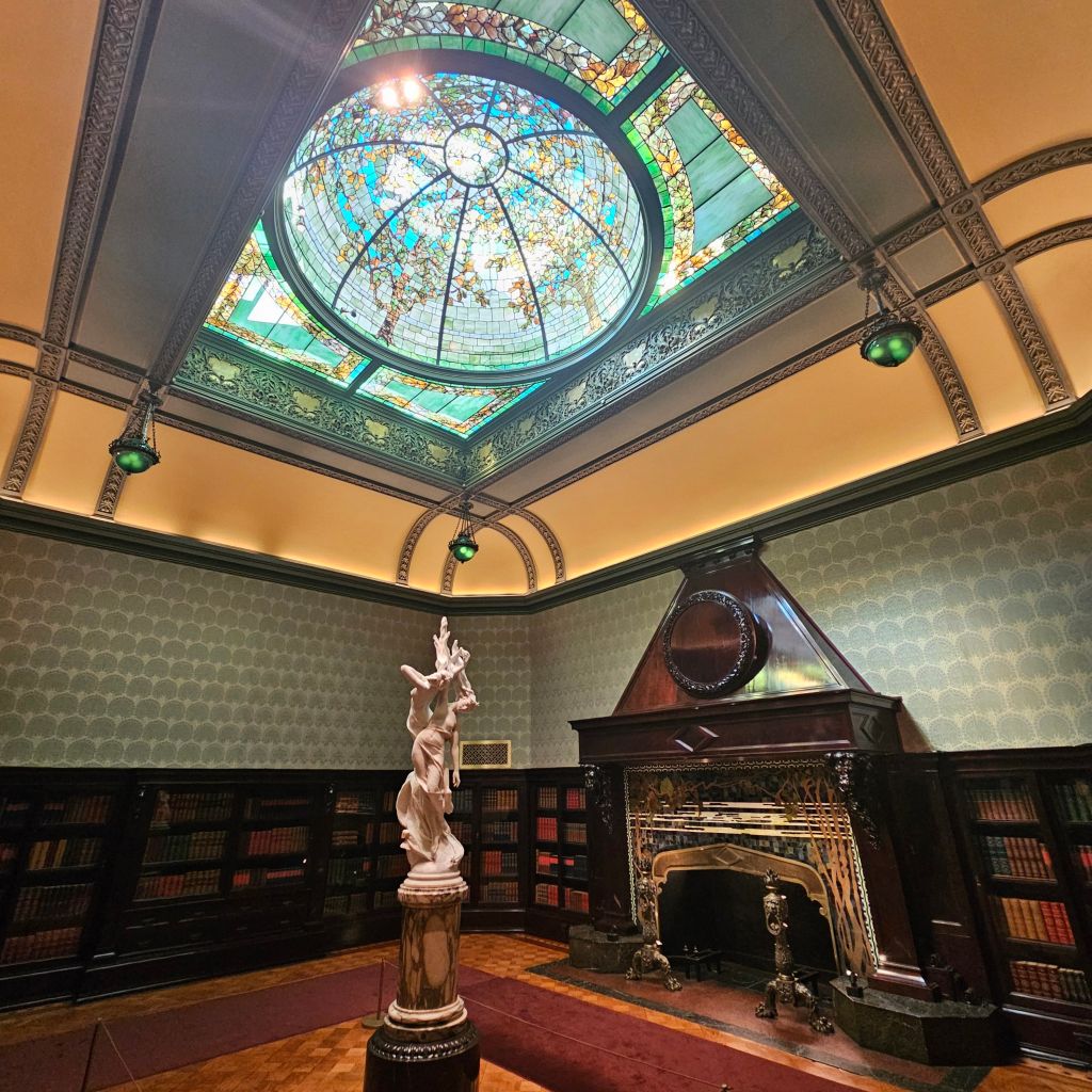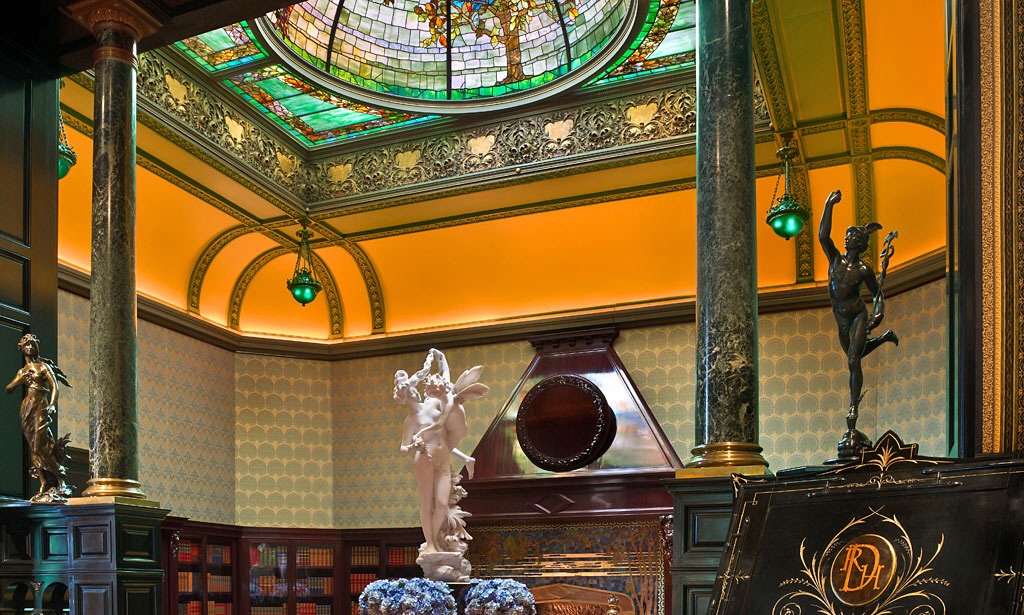 The house was originally built in 1883 for Chicago banker Samuel Nickerson. He paid $450,000 for it – about 14 million today. It’s 24,000 feet of exuberant opulence and Frank Lloyd Wright would NOT have approved.