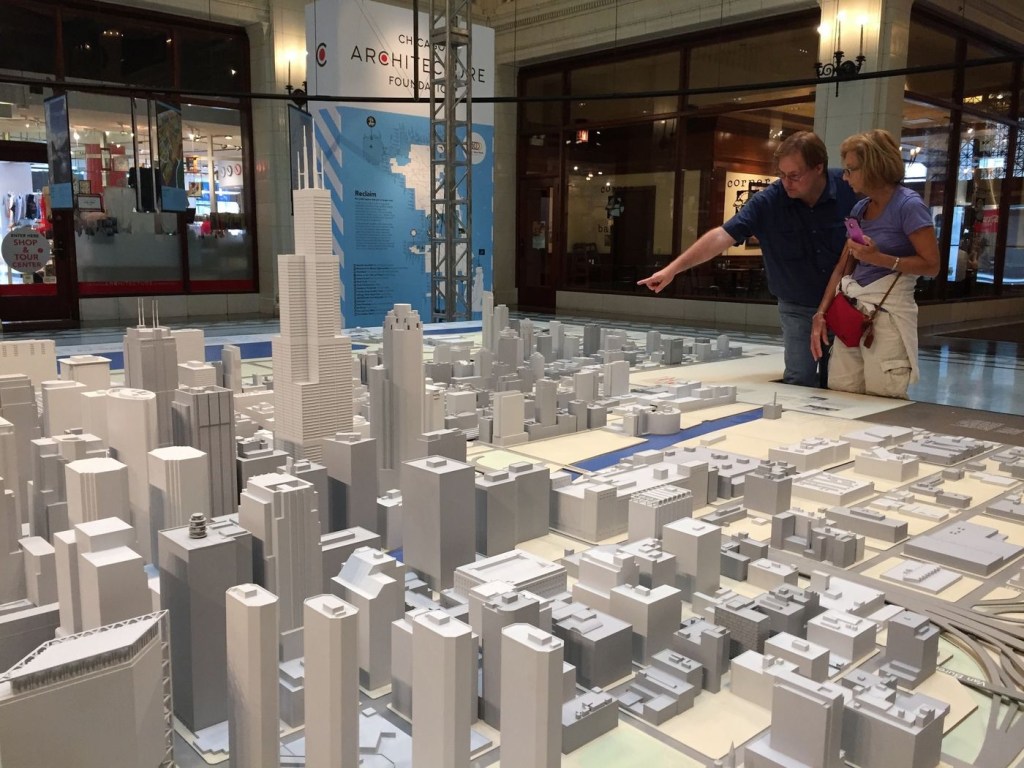 I also took an architectural boat tour run by the Chicago Architectural Center. The CAC is a fantastic place – I bought an annual membership and can do most of their walks for free. They offer 80 different Chicago walks and have a roster of over 300 volunteer docents. I’ve met three of them so far – including one who abandoned Seattle for Chicago. They lie in wait for you at this relief map and wallflowers will not be tolerated – by god they are going to talk architecture with you.