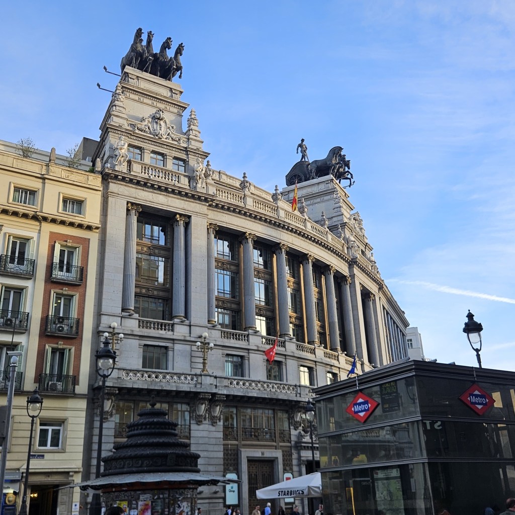 I’m here in Madrid and I just love it! It’s a bustling, buzzing, beautiful city. Here are 3 pictures taken from the single block of my hotel on the Gran Via: