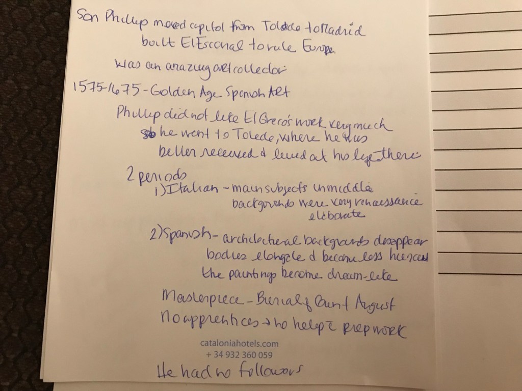 By way of redemption…and you’re going to need to sit down for this…we started off our day with a 90 minute art lecture in the hotel – and not only did I manage to stay awake for the whole thing – I enjoyed it, took actual notes, and learned something.